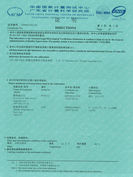 檢測儀表校準證書