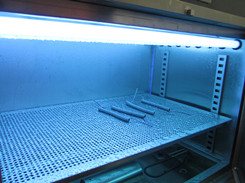 1.試驗箱的結構由耐腐蝕金屬材料制成,包含8只熒光紫外燈,試驗樣品架和溫度、時間控制系統及指示器。